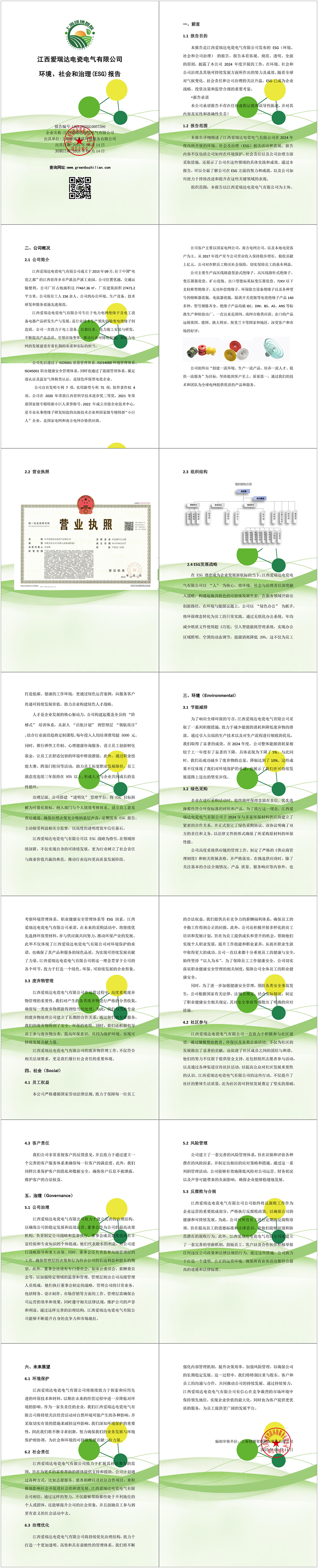 本报告是江西爱瑞达电瓷电气有限公司发布的 ESG(环境、社会和公司治理) 的报告。报告本着客观、规范、透明、全面的原则,披露了本公司 2024 年度开展的工作,在环境、社会和公司治理及其他可持续发展方面所作出的努力及成效。随着全球对气候变化、社会责任和公司治理的关注升温,ESG 已成为企业战略、投资决策和监管合规的重要考量。